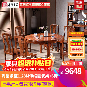 善匠良品 善匠良品 红木家具非洲花梨(学名:刺猬紫檀)实木伸缩圆餐桌椅组合 折叠变形收纳圆餐桌台