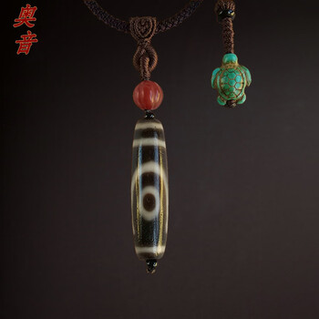 奥音藏传玛瑙朱砂沁两凤眼老天珠手工项链*高级文玩真老无做旧