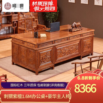 屿墨 红木家具非洲花梨(学名:刺猬紫檀)办公桌 实木书桌电脑桌 班台书桌椅组合