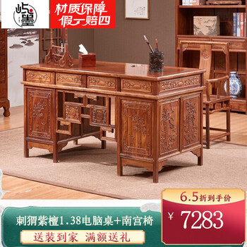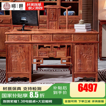 曦世红木家具非洲花梨(学名:刺猬紫檀)办公桌 实木书桌中式豪华电脑桌