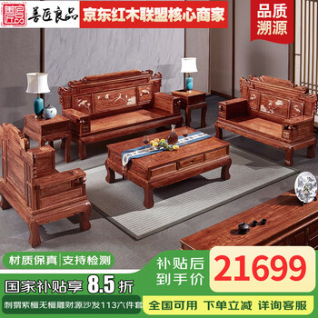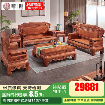 曦世红木家具非洲花梨(学名:刺猬紫檀)中式沙发 仿古实木沙发组合 别墅客厅家具