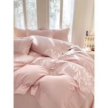 苏丽妃北欧风全棉180支床单四件套纯棉刺绣被套简约轻奢1.8床笠床上用品