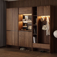 黑胡桃木边柜原木日式高柜沙发角柜家用立柜藤编置物柜客厅储物柜