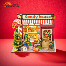 弘达木质拼图圣诞玩具娃娃屋diy拼装小屋手办模型街景3D玩具跨境