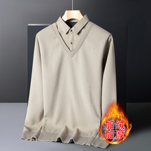 冬季加绒加厚爸爸毛衣男士假两件针菠萝纹拼接针织毛衣中年打底衫