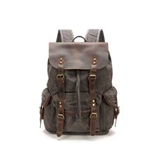 胡椒盐复古疯马皮双肩背包欧美防水油蜡帆布包时尚大容量旅行包