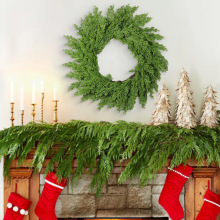 跨境圣诞节日挂件花环绿色松针天然藤圈节日前门装饰壁饰场地布置