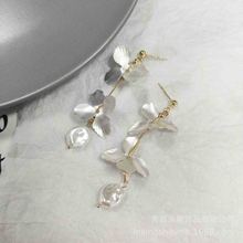 「鸢尾」法式复古文艺优雅森系超仙花瓣长款小众花朵珍珠耳环耳饰