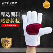 铁路帆布手套 电焊手套加长复合加厚双层满衬掌心皮防护劳保手套