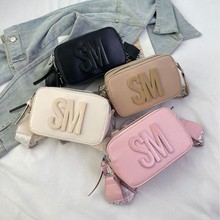 跨境女士包包女2025休闲百搭小方包个性时尚小众字母宽肩带单肩包