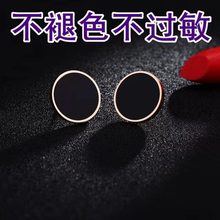 耳钉韩版简约圆饼黑色冷淡情侣百搭钛钢18K玫瑰金珍珠流星雨