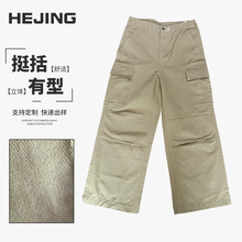 定制复古水洗伞兵口袋工装裤男女高街潮流宽松时尚阔腿休闲裤