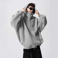 宽松版双拉链卫衣落肩加绒帽衫BOXY加厚卫衣外套定制高街潮牌印图
