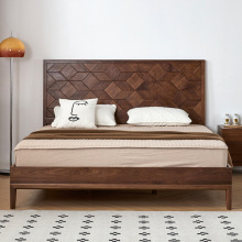北美黑胡桃木全实木床现代简约高靠背双人床北欧樱桃木魔方块婚床