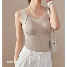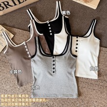 新款早春纽扣简约休闲百搭吊带背心女自带胸垫不跑杯舒适打底美背