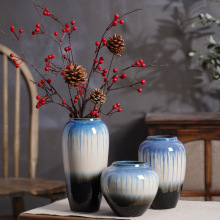 中式陶瓷花瓶摆件玄关卧室插花花瓶复古样板房软装小巧大口蓝宝石