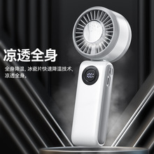 跨境新款高速手持数显挂脖usb充电便携带折叠风扇 冰敷制冷小风扇