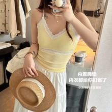 闺蜜哒2510字母方领背心女早秋款舒适柔软打底自带胸垫百搭背心女