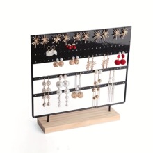 铁艺桌面式实木底耳环耳钉收纳架,耳坠梳妆台首饰盒创意收纳架