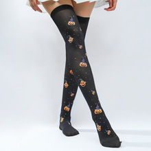 万圣节成人长筒袜 丝网印刷南瓜巫婆帽踩脚袜节日派服饰配件过膝