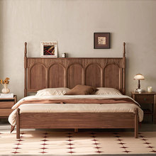 黑胡桃木法式复古实木双人床现代简约樱桃木原木美式中古主卧大床