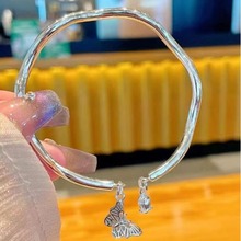 批发蝴蝶结铃铛银手镯女小众甜美在逃公主波浪开口镯子送女友代发