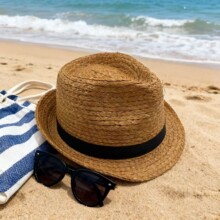 夏天卷边棕色拉菲草男士巴拿马帽外贸防晒遮阳帽子