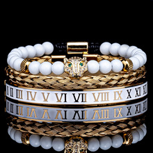皇冠魅力金色骷髅手链不锈钢男士白色珐琅罗马数字手镯时尚珠宝