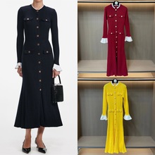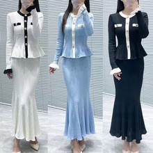 法式秋冬新款针织连衣裙 名媛优雅圆领荷叶边收腰开衫+鱼尾裙套装