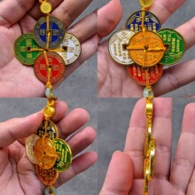 厂家直销新款五路财神挂件金属材质招财进宝财神眼铜币五帝钱挂饰