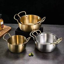 韩式海鲜锅不锈钢干锅平底双耳沙光金色炒锅