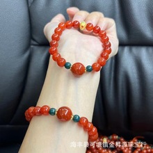 天然红色玛瑙手链南红手串搭配古法金南红单珠夏天时尚直播批发款