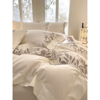 苏丽妃北欧风全棉180支床单四件套纯棉刺绣被套简约轻奢1.8床笠床上用品