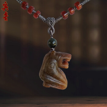 奥音西周制式老和田玉朱砂沁双螭龙玉媛简约项链*高级老玉收藏