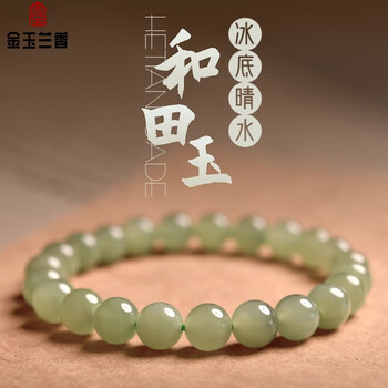 金玉兰香(JIN YU LAN XIANG)新中式天然玉石晴水和田玉手串圆珠手链手饰男女款