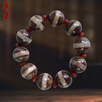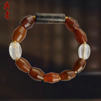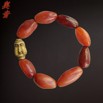 奥音S10藏传佛玛瑙特殊图腾爱心三眼老天珠无优化老绿松石多宝手串