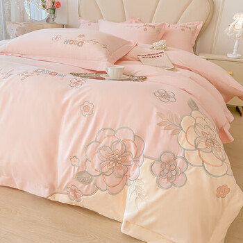 苏丽妃A类母婴级纯棉新疆长绒棉四件套全棉轻奢刺绣被套床单1.8床笠床品