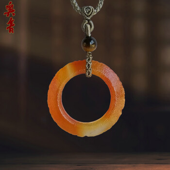 奥音汉代制式老和田玉双面雕饕蹏如意纹玉环项链*高端老玉收藏