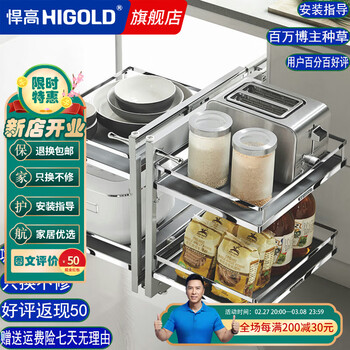 悍高 HIGOLD橱柜拉篮双层开门式内置碗篮304不锈钢厨房收纳碗架篮碗碟篮