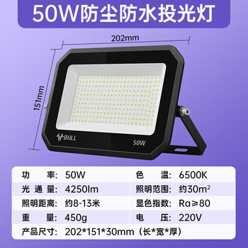 公牛(BULL)防水LED投光灯户外庭院照明园林露营工厂农村平室外大门节能省电