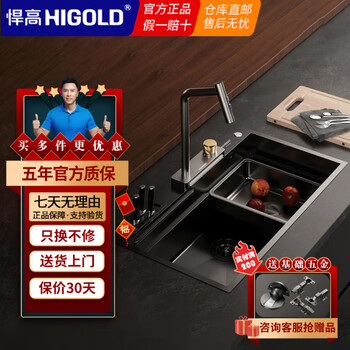 悍高 HIGOLD厨房纳米抗油污304不锈钢水槽 手工水槽台上台下大容量洗碗