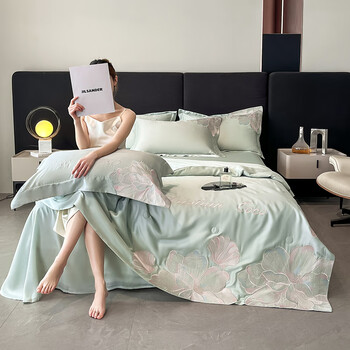 水星系列家纺高端A类母婴级180支全棉磨毛四件套纯棉刺绣被套四季床上用品