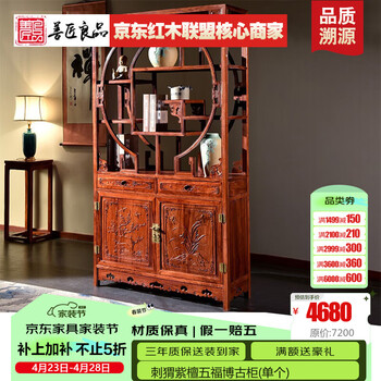 屿墨 红木家具非洲花梨(学名:刺猬紫檀)实木博古架 中式多宝格书架展示架置物架