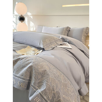 水星系列家纺纯棉刺绣四件套100全棉柔软轻奢高级感被套床单床笠床上用品