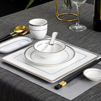 粒矜中式酒店陶瓷摆台餐具套装餐厅饭店碗碟碗筷盘宴会摆盘筷勺四件套