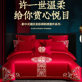 苏丽妃A类母婴级全棉纯棉新疆长绒棉四件套刺绣粉色被套床单1.8床笠床品
