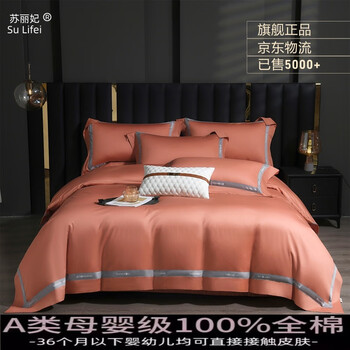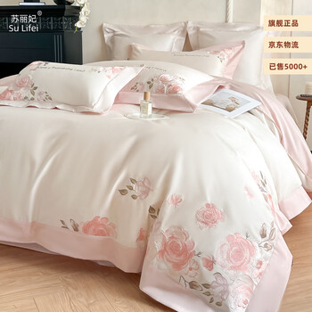 苏丽妃180支A类母婴纯棉刺绣四件套全棉长绒棉被套高档亲肤裸睡床上用品