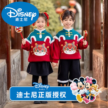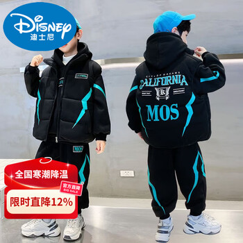 迪士尼男童套装冬季加绒三件套2026新款运动儿童男孩中大童保暖加厚卫衣