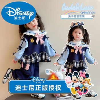 迪士尼女童秋冬朱迪兔子警官加绒套装新款女宝卡通可爱风冬季加厚两件套