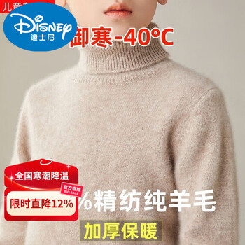 迪士尼儿童加厚款半高领100%羊毛衫保暖纯色秋冬半套头男女同款2025新款